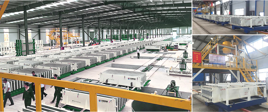 • The equipment can produce prestressed inner wall panel and outer wall panel (foaming board, compound board and sandwich board) and its performance has reached the leading level in domestic similar products with annual output of 80000 ㎡ per wall panel.