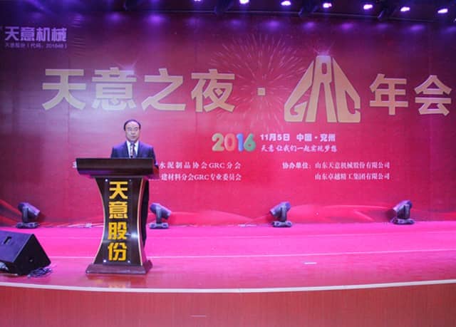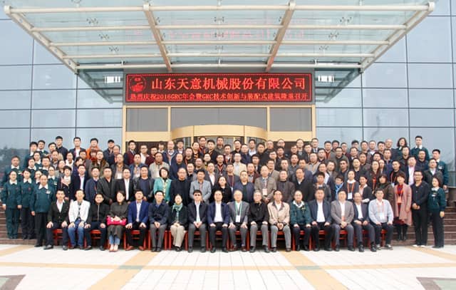 為加快GRC技術(shù)創(chuàng)新,積極適應(yīng)經(jīng)濟(jì)新常態(tài),2016年11月5日,2016 GRC年會(huì)暨裝配式建筑發(fā)展研討會(huì)在山東圣德酒店盛大召開(kāi),本次會(huì)議由GRC協(xié)會(huì)及專(zhuān)業(yè)委員會(huì)主辦,山東天意機(jī)械股份有限公司協(xié)辦。