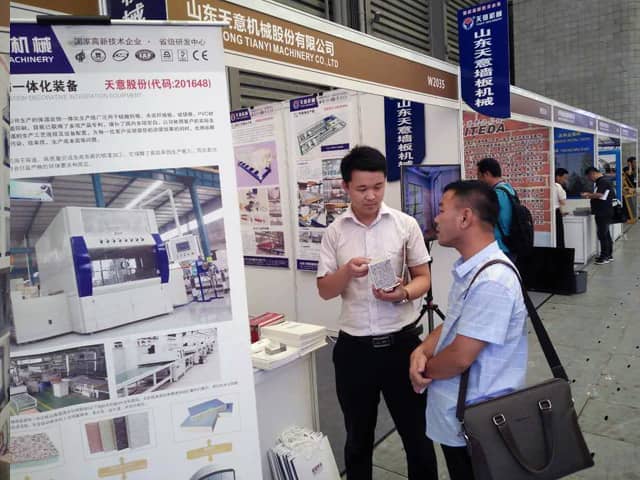 本次展覽會(huì)現(xiàn)場(chǎng)人頭攢動(dòng),氣氛十分熱烈,天意機(jī)械展位也是人氣火爆,前來(lái)咨詢鋼結(jié)構(gòu)集成房屋、外墻保溫裝飾一體化板生產(chǎn)線,輕質(zhì)墻板生產(chǎn)線、復(fù)合墻板生產(chǎn)線等產(chǎn)品的客戶絡(luò)繹不絕。銷(xiāo)售部李經(jīng)理,熱情的向來(lái)訪的每位客戶,介紹了天意綠色建材裝備在鋼結(jié)構(gòu)建筑、裝配式建產(chǎn)業(yè)化中的應(yīng)用優(yōu)勢(shì)。