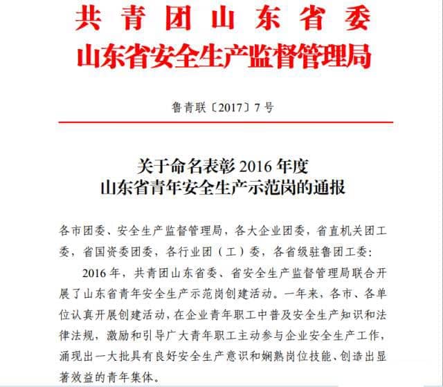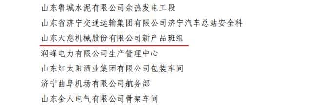 為激勵(lì)引導(dǎo)全省廣大青年職工強(qiáng)化安全生產(chǎn)意識(shí),提高安全生產(chǎn)技能,參與安全生產(chǎn)管理,2016年共青團(tuán)山東省委、山東省安全生產(chǎn)監(jiān)督管理局聯(lián)合開展了山東省青年安全生產(chǎn)示范崗創(chuàng)建活動(dòng)。山東天意機(jī)械股份有限公司新產(chǎn)品班組榮獲2016年度“山東省青年安全生產(chǎn)示范崗”